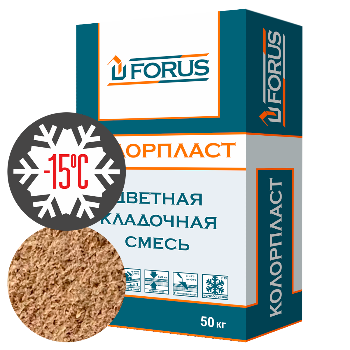 Forus Колорпласт 5168 - зимняя цветная кладочная смесь светло-коричневая c противоморозной добавкой 50кг.