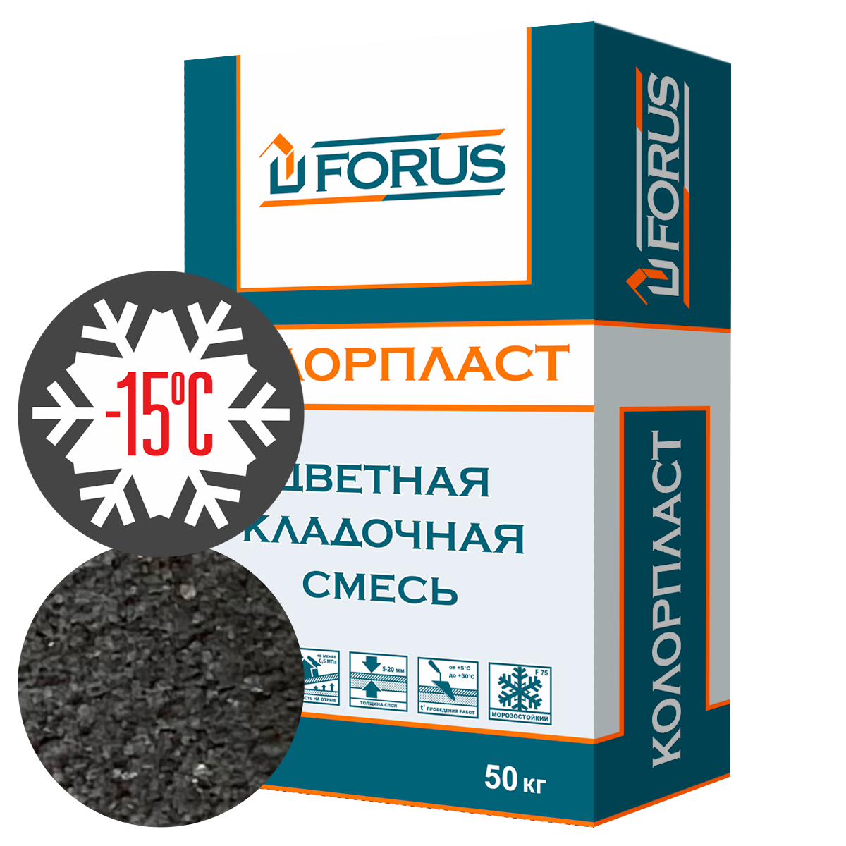 Forus Колорпласт 5063 - зимняя цветная кладочная смесь чёрная c противоморозной добавкой 50кг.
