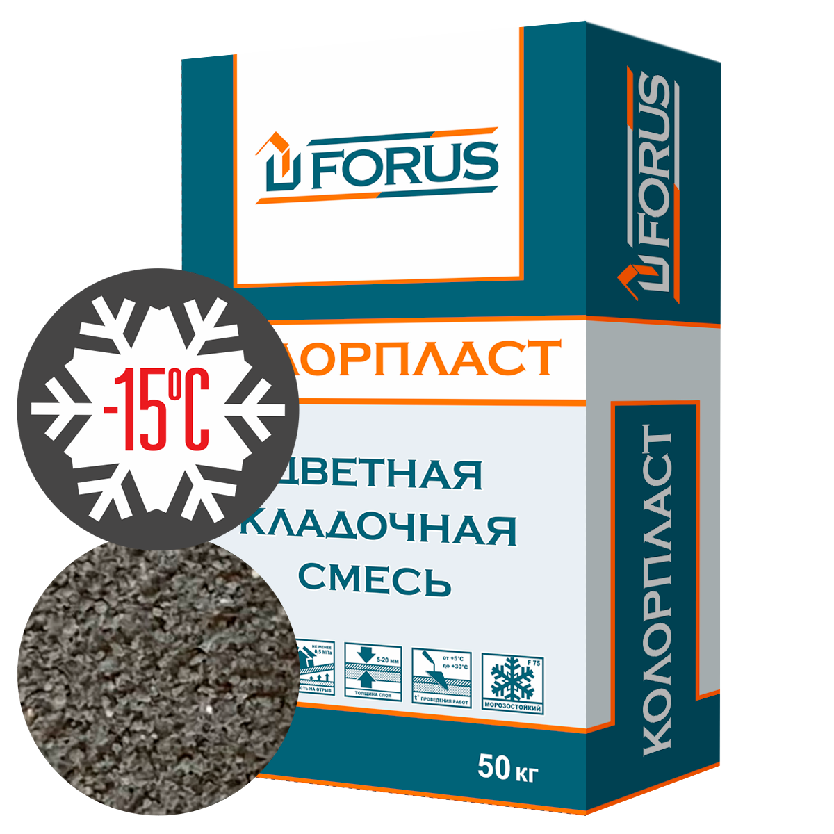 Forus Колорпласт 5057 - зимняя цветная кладочная смесь тёмно серая c противоморозной добавкой 50кг.